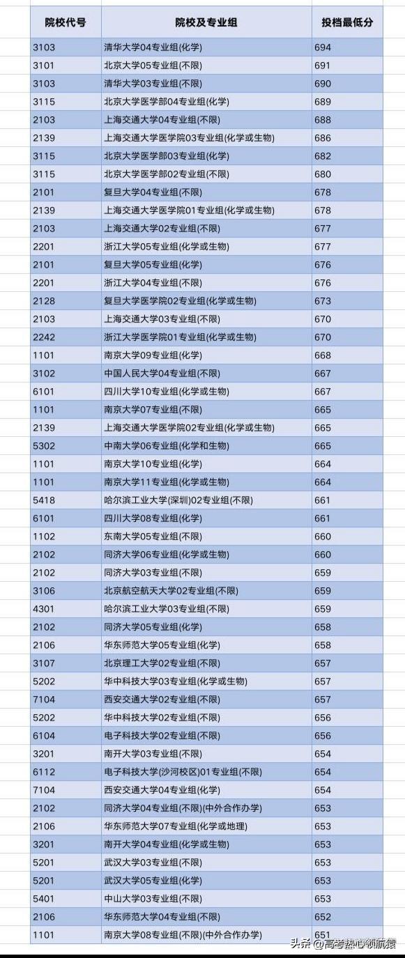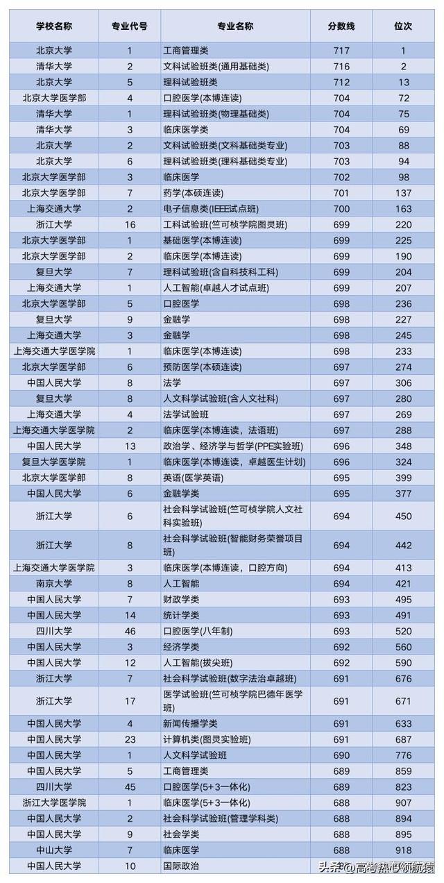 2023年985大学录取分数线TOP50清单(浙江一段)