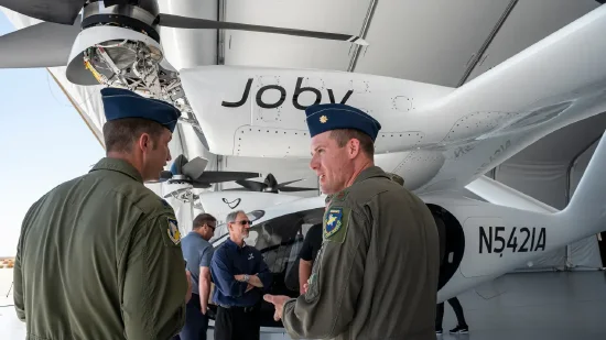 Joby研发的电动垂直起降飞行器(eVTOL)具备直升机式起降能力。开发商表示该技术有助于缓解交通拥堵并减少排放。