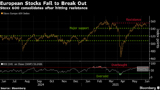 由于正在进行的贸易谈判几乎没有取得实质性进展的迹象,欧股的反弹在6月陷入停滞。在美国政府加紧与贸易伙伴争取达成关税协议之际,美国商务部长霍华德·卢特尼克表示,欧盟可能会是最后达成协议的经济体之一。