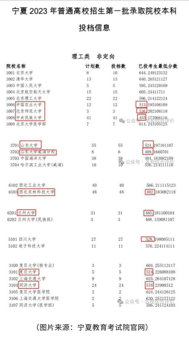 宁夏2023年理工科考生409分山东大学威海分校,455分捡漏中央民族大学,兰州大学485分,524分捡漏复旦大学!
