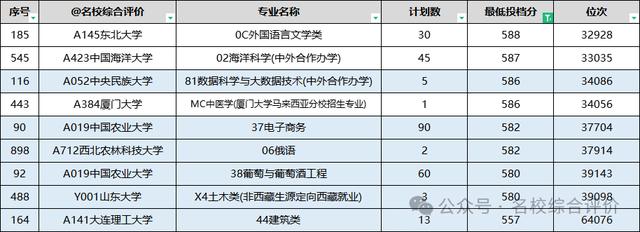 2023年,其他省市也发生了45%捡漏985。山东省大连理工大学557分,580分中国农业大学,西北农林科技大学582分,东北大学588分。