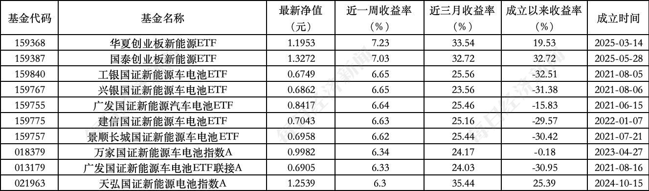 值得一提的是,与上周相似,本期上榜的泛ESG主题指数型基金行业集中度高,10只产品全为新能源或新能源汽车相关产业,但自成立以来获得正收益的基金仅有3只。