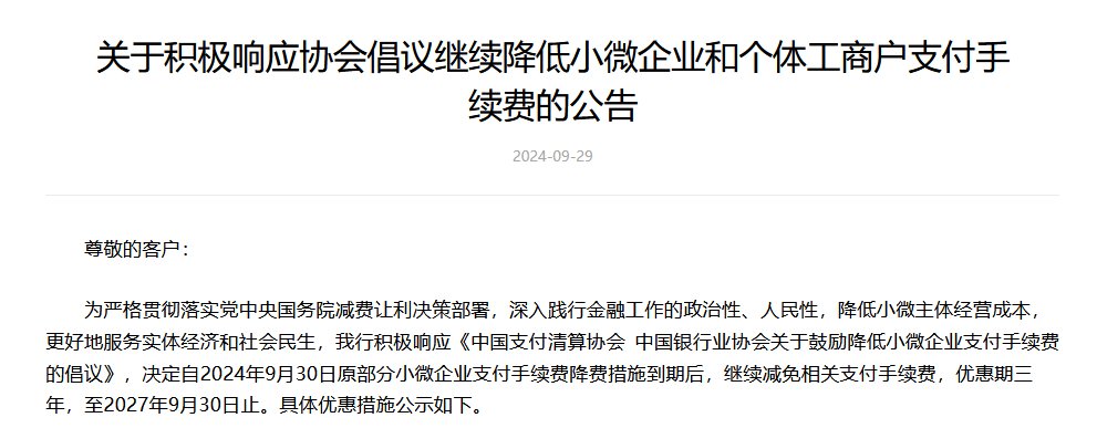 国有六大行响应两协会倡议延长三年支付降费政策优惠 招商银行、平安银行等股份行纷纷跟进