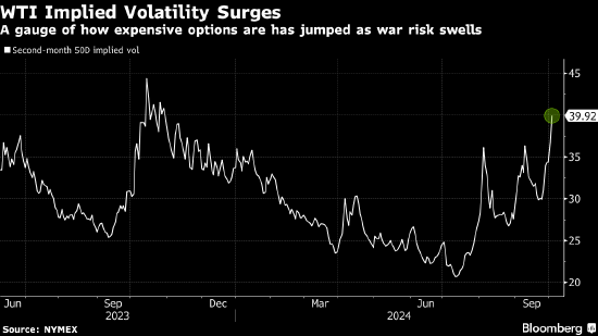 布伦特原油价格周二创下去年3月份以来的最大日内波动,因为伊朗对以色列发动导弹袭击,后者则誓言要报复。这些最新的地缘政治发展震动了之前几周投资者累积了大量看跌仓位的石油市场。