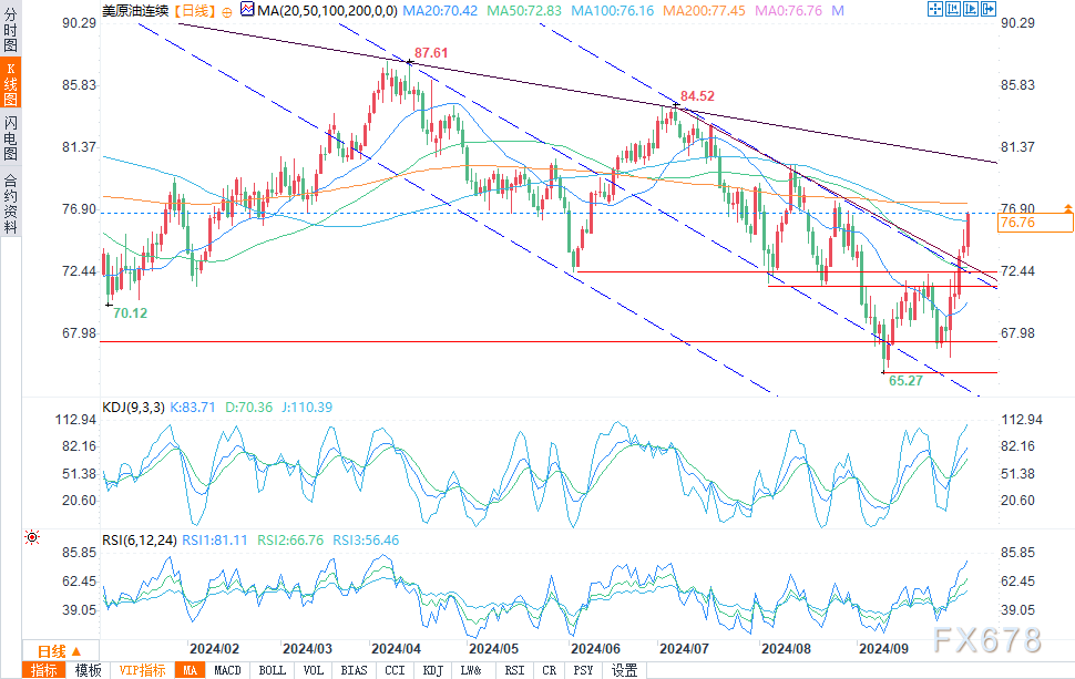 原油技术分析:油价升至76美元上方,向200均线看齐