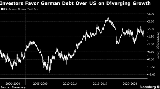 Vanguard和高盛等公司押注德债表现优于美债这一主题有进一步的发展空间。