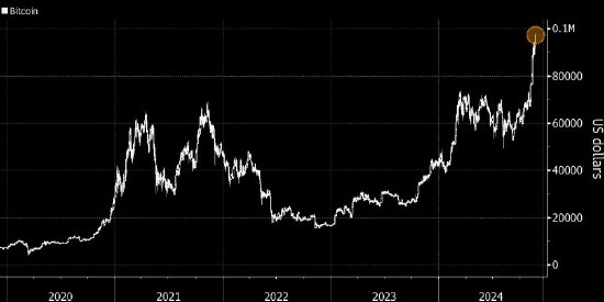 比特币价格趋近里程碑式的10万美元大关,市场预期有了美国当选总统唐纳德·特朗普对加密货币的支持,美国监管环境将更加友好,投资者需求将会扩大。