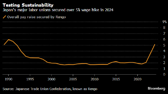 “我要求大家在明年的薪资谈判中给予合作,在今年势头的基础上大幅提高薪资,”石破茂在与工会及企业领导人会谈之后表示。今年协议中的平均加薪幅度达到33年来最大,在持续通胀的情况下企业响应了加薪要求。
