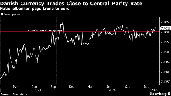 丹麦央行将基准利率下调25个基点,与欧洲央行动作一致,以维护丹麦克朗盯住欧元的汇率制度。