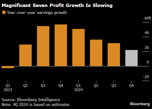 彭博行业研究数据显示,这些巨头盈利同比增速在2023年末见顶,预计将连续第五个季度放缓。