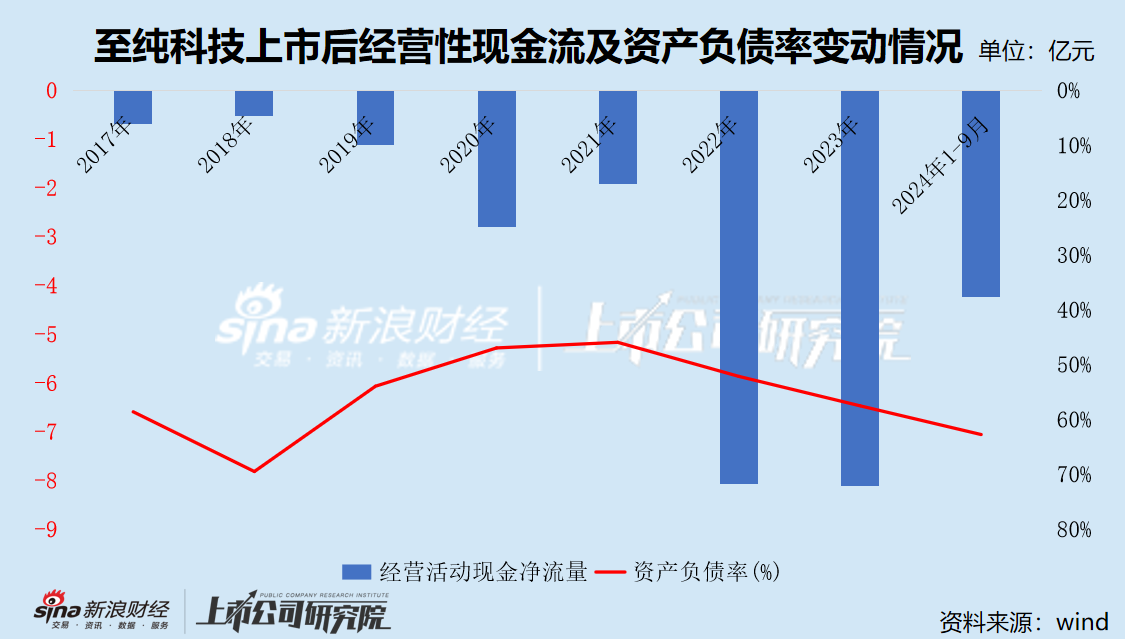 除盈利承压外,至纯科技面临的债务风险也不容小觑。