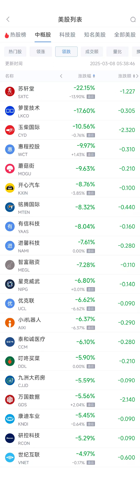 下跌股当中(按市值降序排列),京东跌3.71%,贝壳跌0.82%,中通跌1.85%,富途控股跌3.25%,满帮跌0.83%,中国新城农村跌3.76%,WSP控股跌1.85%,万国数据跌5.56%,360数科跌2.05%,金山云跌0.28%。