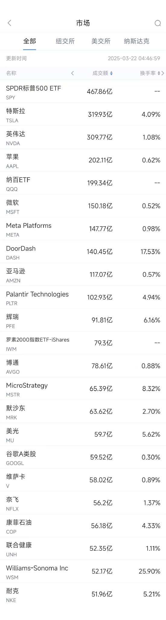 3月21日美股成交额前20:特斯拉连续第九周下跌