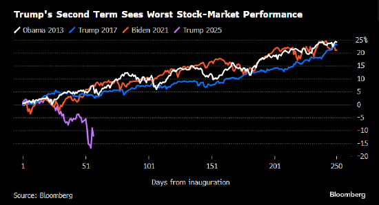 由于特朗普快速变化的贸易政策让投资者难以确定下一步行动,全球市场动荡不安,周五动荡走势几乎没有缓解的迹象。对经济增长将脱轨的担忧使美元跌至六个月新低。美国30年期国债收益率接近5%大关。