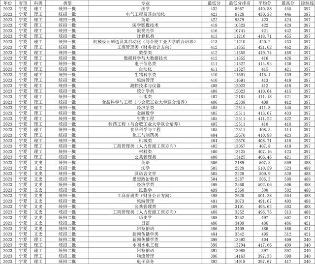 1.2023年,北方民族大学在宁夏各专业录取分数线