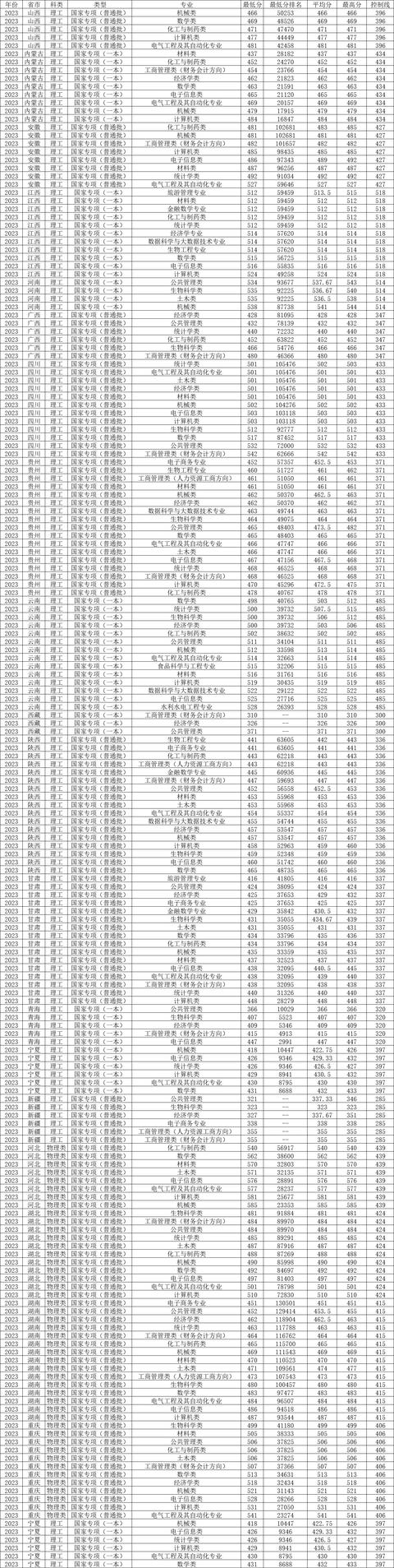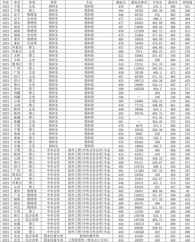 六、2023年北方民族大学民族班,中外合作各省各专业录取分数线